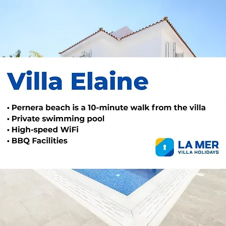 Villa Elaine je situována ve městě Protaras a nabízí terasu s grilováním. Tato vila se skládá z 3 ložnic, kompletní kuchyně a 2 koupelen.